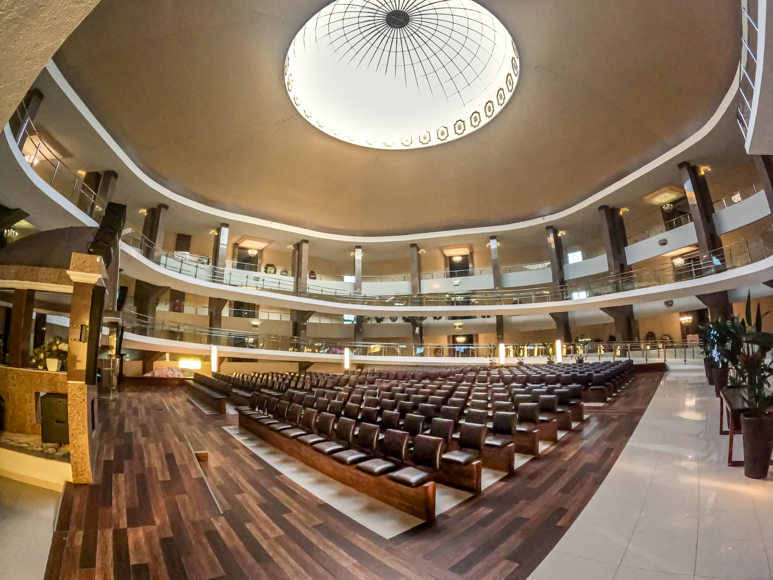 Acomoda confortavelmente 300pessoas sentadas e pode receber até 2.000 pessoas em pé.