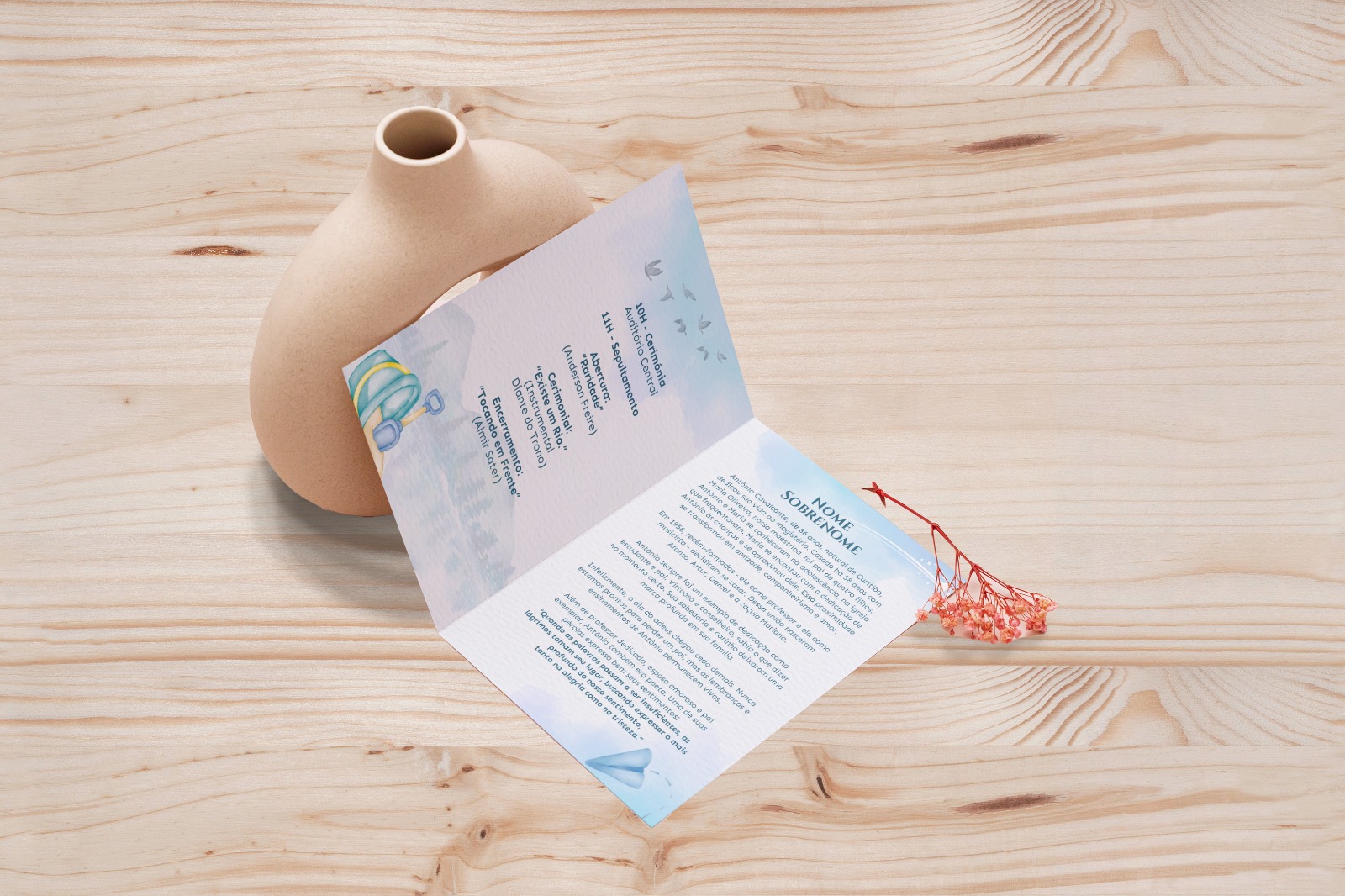 Escolha nossos folders para uma experiência que vai além do papel, celebrando a vida e honrando a jornada do seu ente querido.